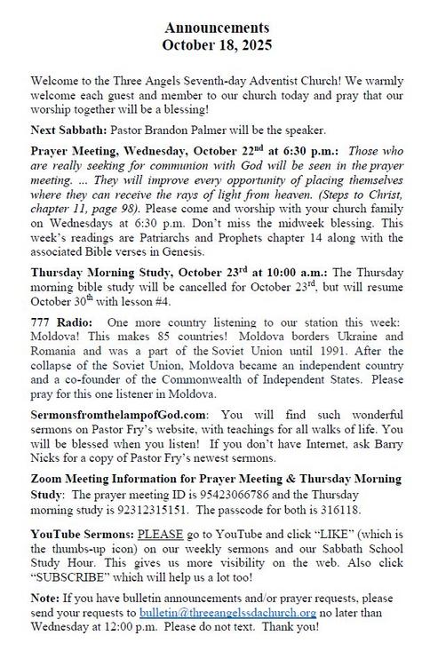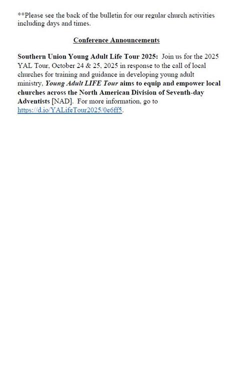 Bulletin for Sabbath